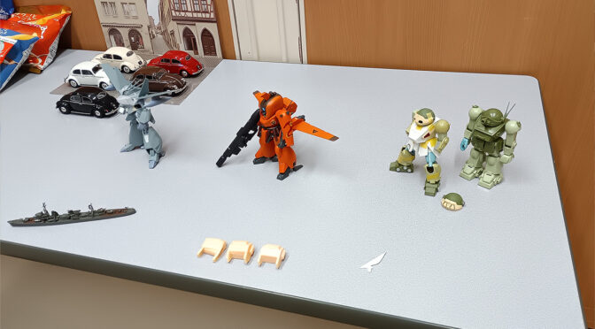 あたしは楽プラビートルの新色を作ってました。前の3つと並べる。もう一色は作るのに飽きてやめてしまった。同じのを3つ作るのはしんどい。