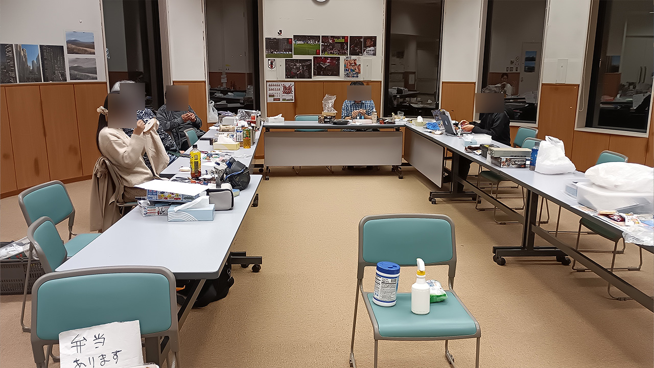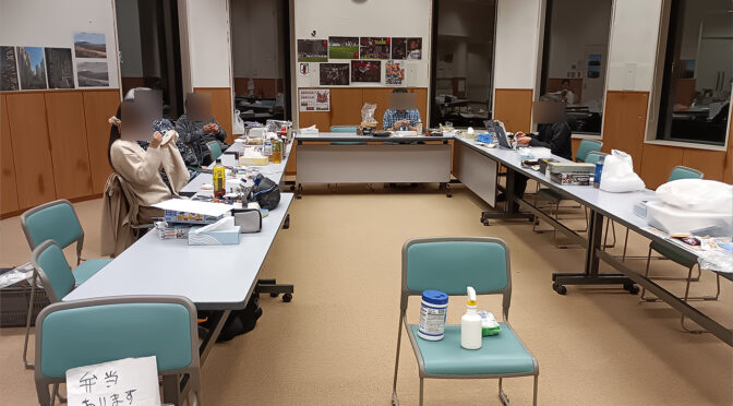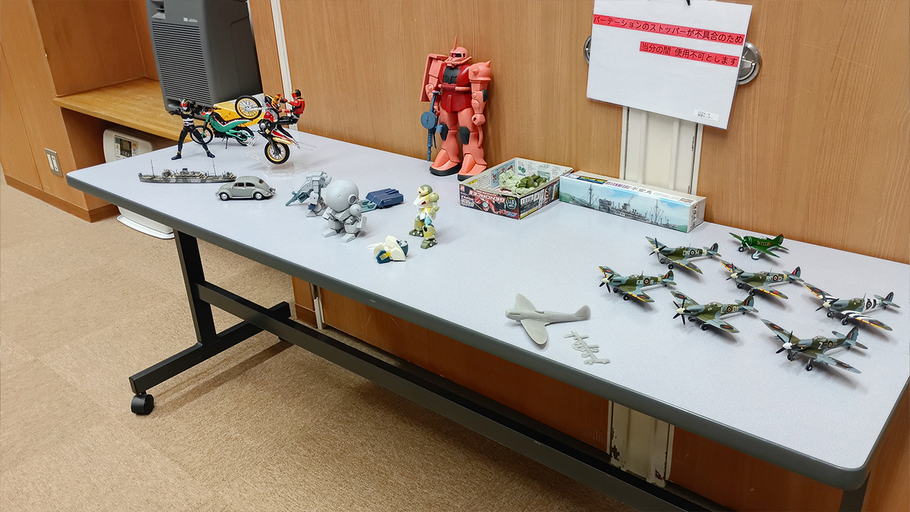今日はプラモを作りながら語る会となっておりまして、会場はこのような感じでした。