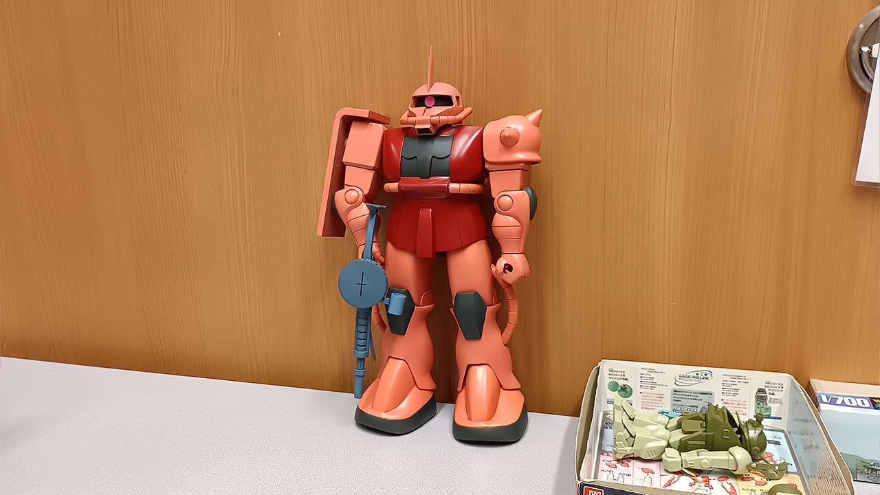 1/60シャア専用ザク。できた。足首の関節が柔くてまっすぐ立てないヽ(´Д`;)ノ