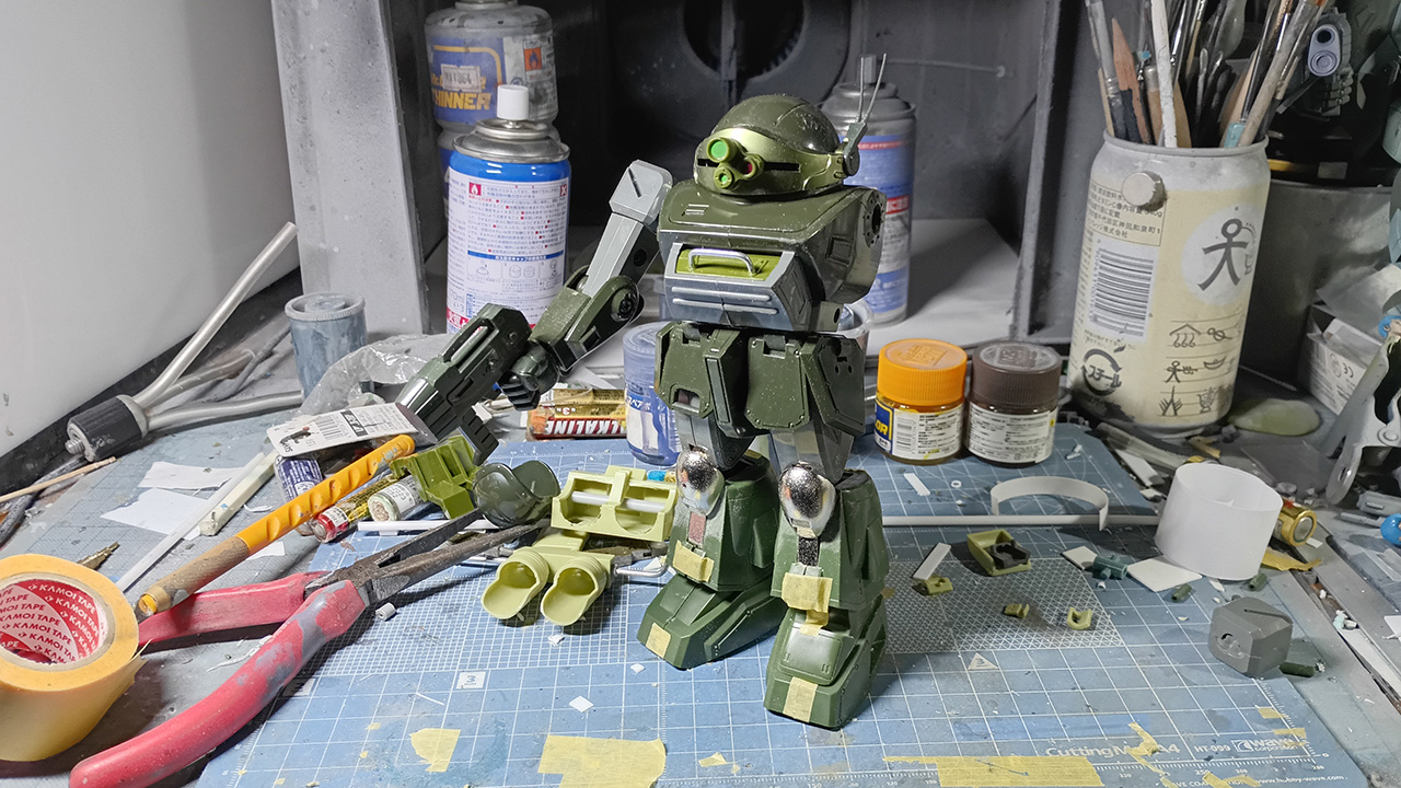 プラモ・ガレキ, 作成中1/24 マーシィドッグ(デュアルモデル)(2) ギャラリー 2026年2月24日 潜水空母 ぐらぶろん改(ホス部) コメントする作成:2026年〜(公開日:2026年2月24日) 三連休中の成果。あんまり進まなかった。 足首に関節技ダブルボールジョイントを仕込んで、スネにスライドレールを仕込んだ。背中のタンクは可動にするためにガイドロール(?)を金属に置換して可動範囲を策定してるところ。つづく。制作履歴1/24 マーシィドッグ(デュアルモデル)(2)– 今見ているページ1/24 マーシィドッグ(デュアルモデル)(1)