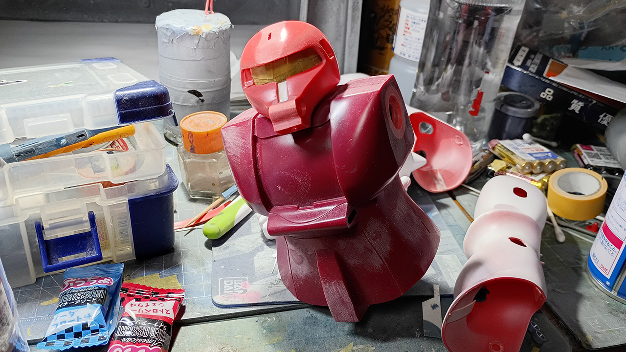 塗るのはこちら。1/60シャア専用ザク。近々の再販時に買って、表面処理の途中で放置しておりましたのを制作再開しました。