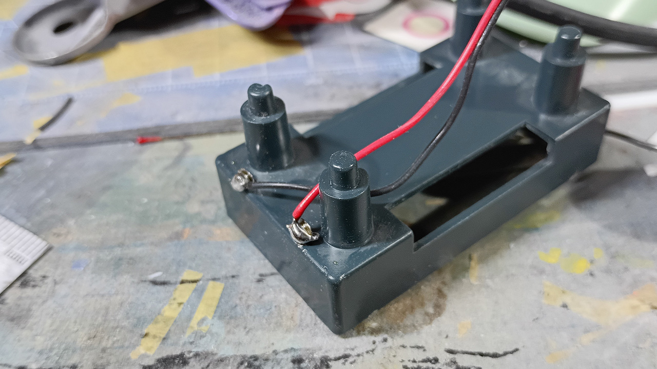 LEDとテープを接続する。はんだづけしたほうがよいけど、太くなってパーツに通せなくなっちゃうおそれがあるので熱収縮テープを使う。