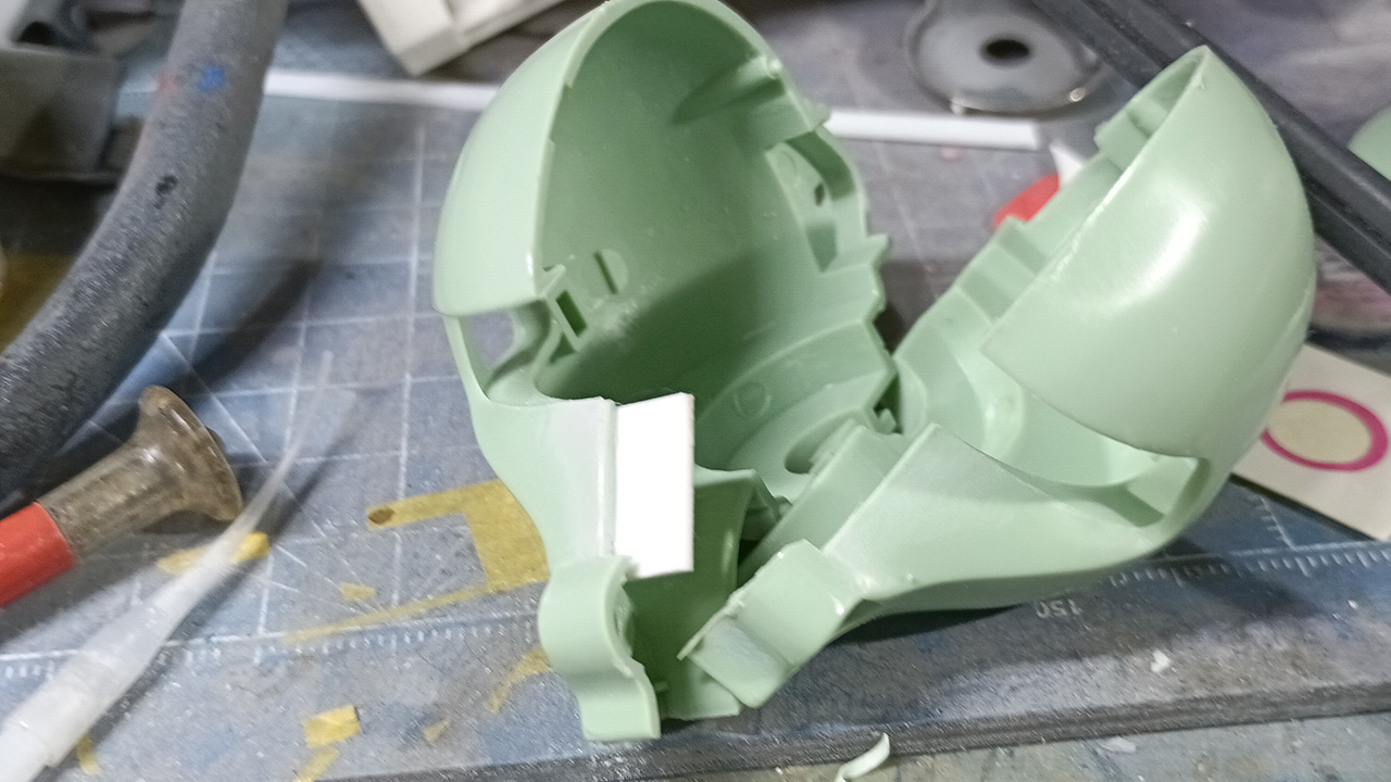 鼻の合わせ目はけしづらいのでプラ板で置き換える。定番。