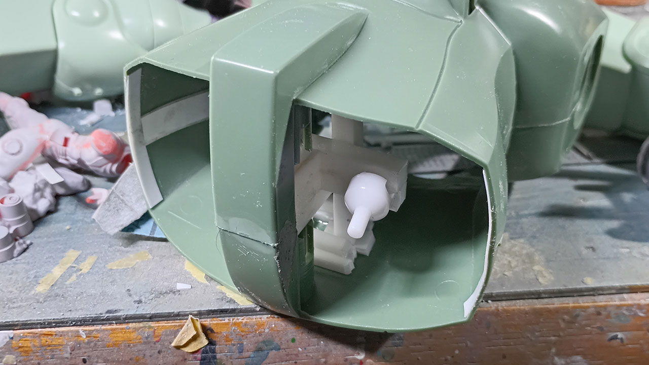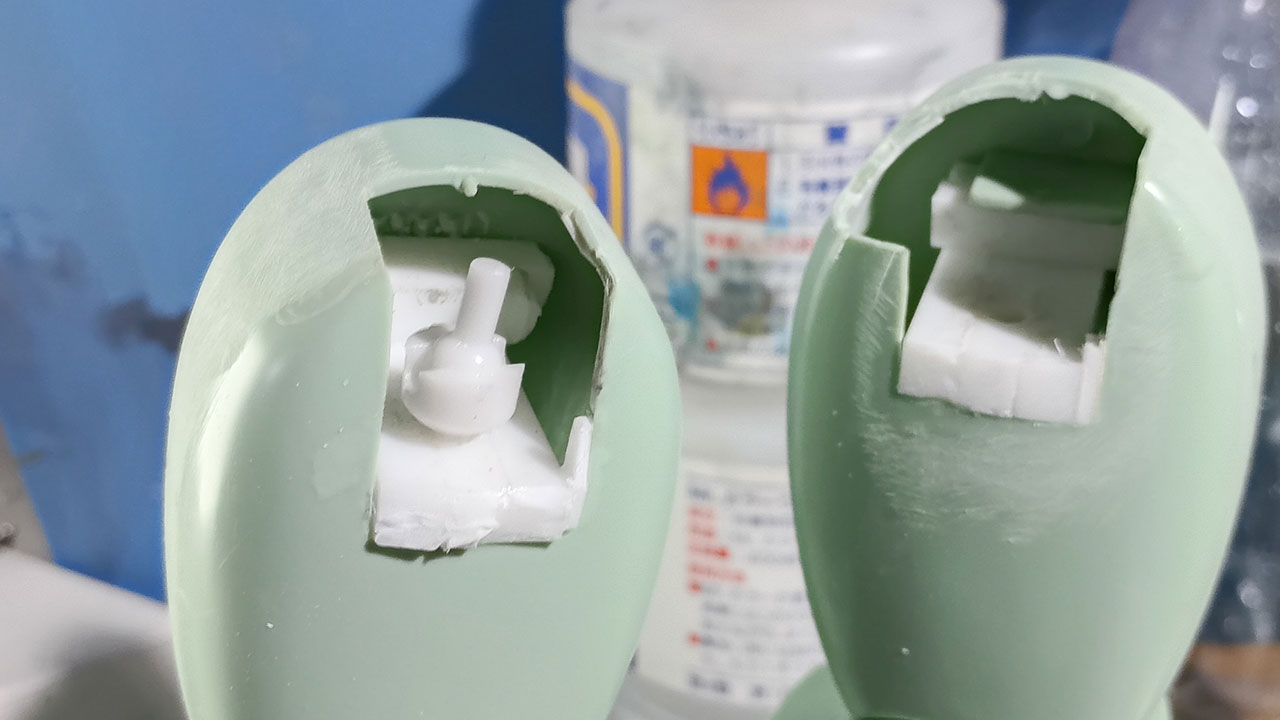 胴体パーツ側。合わせ目の裏打ちに時間がかかる。これをやらないと完成後に負荷がかかって割れてしまう。