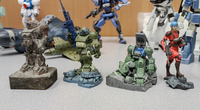 別々に作ってたのでスコープドッグの色は統一されてません。その時の気分で色を決めて塗ってます。